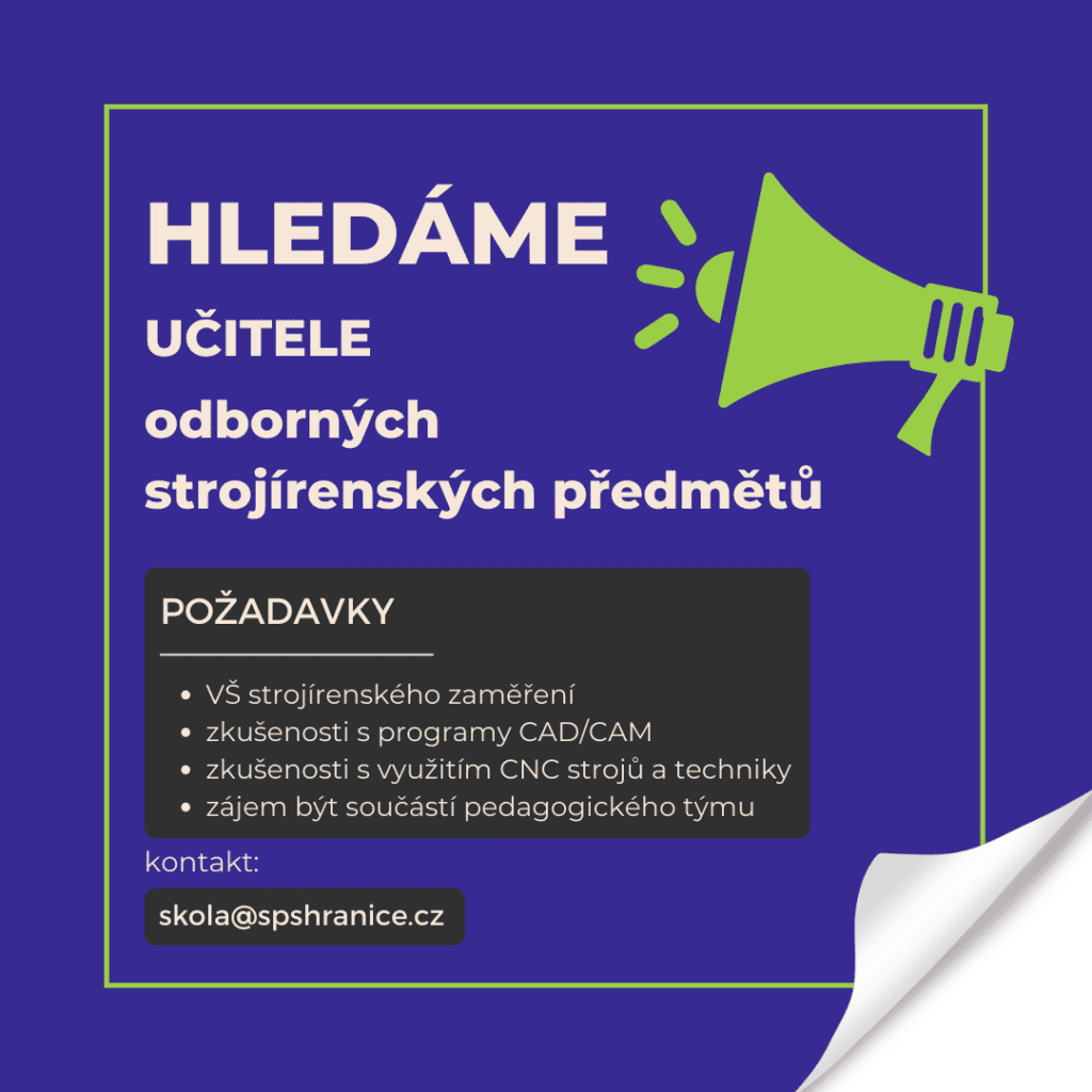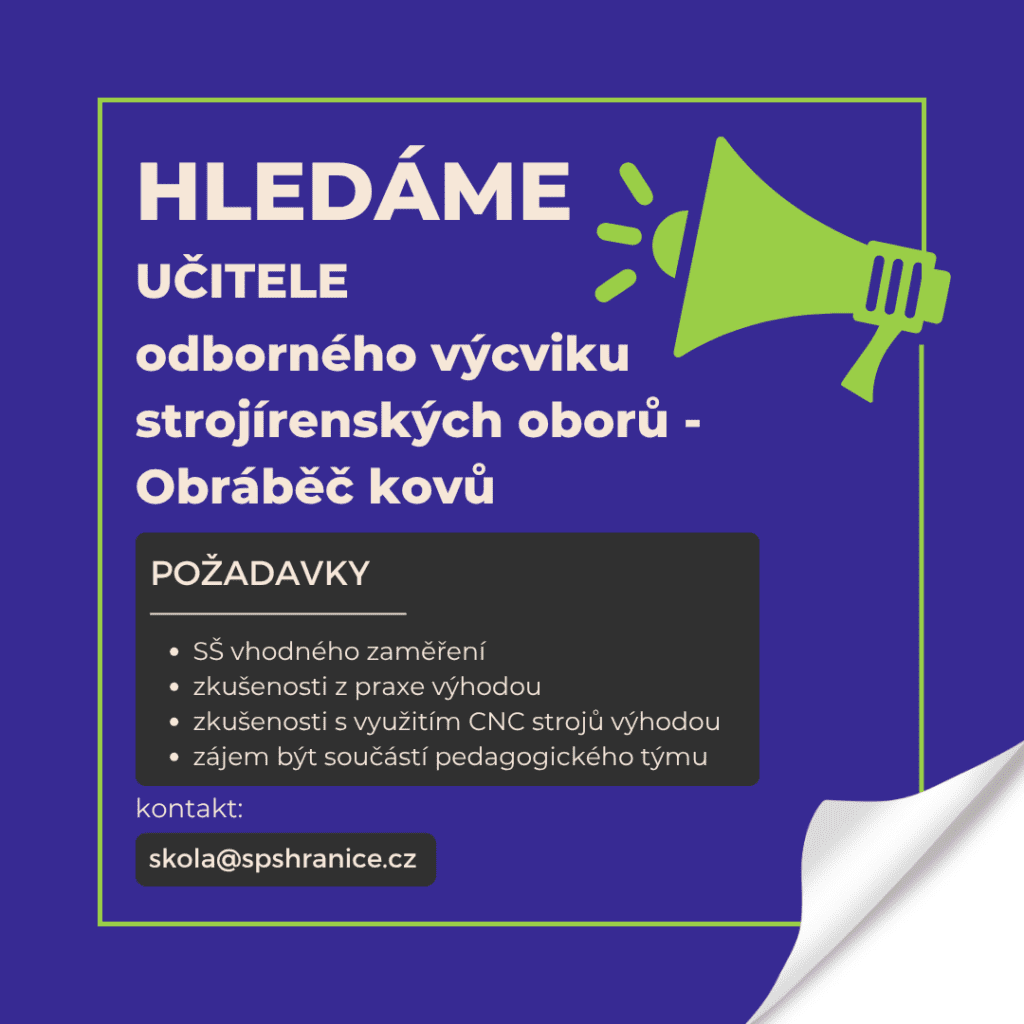 Chcete se zapojit do vzdělávání mladé generace ve strojírenském oboru? Dveře jsou u nás otevřené jak pro učitele s praxí, tak i absolventy či zájemce s dlouholetou zkušeností z praxe.